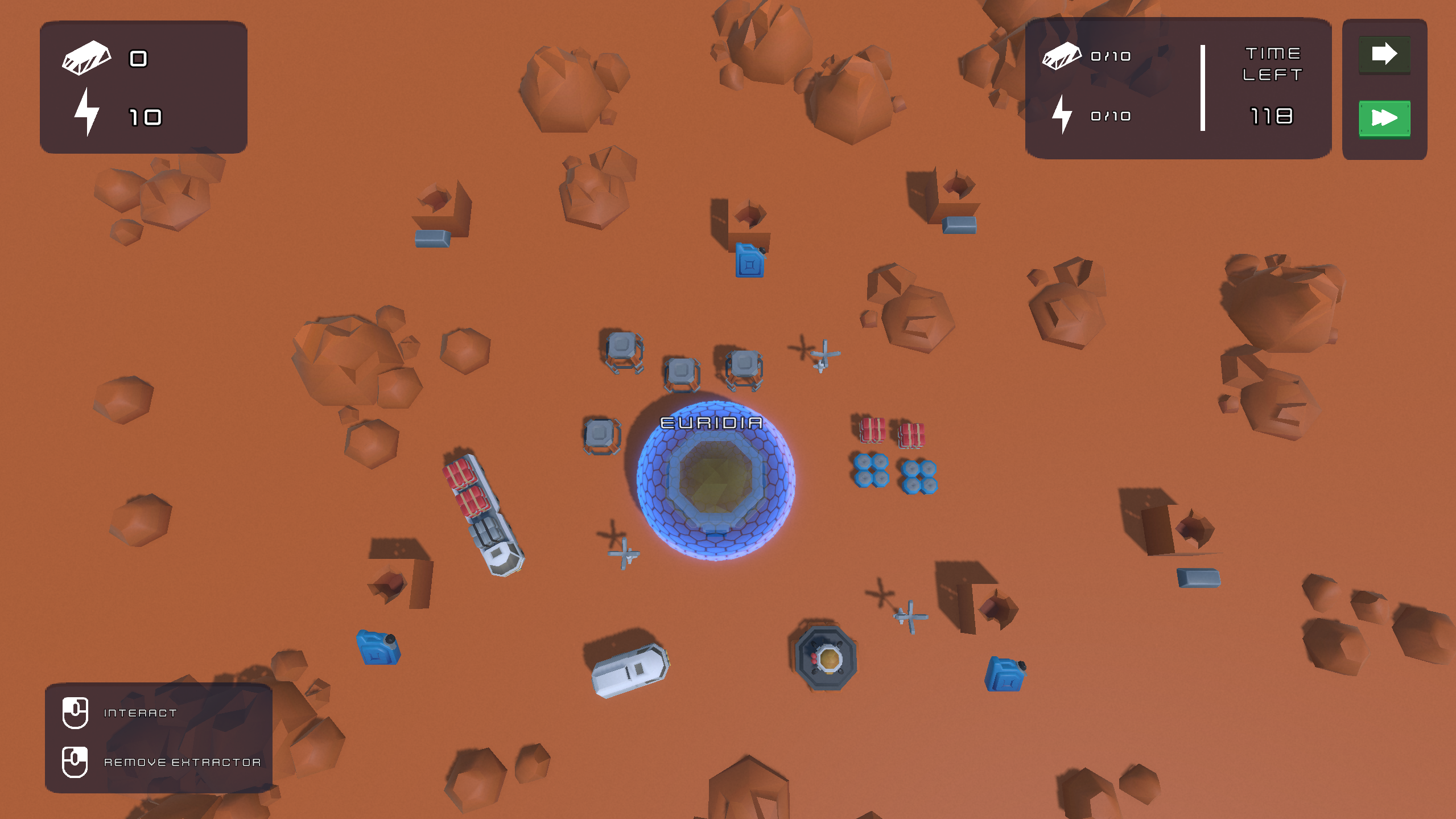 A short rogue-lite management game happening on Mars in which you extract resources to meet quotas in order to survive against robots. Earn money through completing quotas to buy more efficient extractors and reach the final quota objective.
